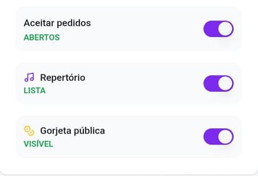 Transforme pedidos de música em interação e gorjetas via PIX, direto no seu celular — sem complicação.